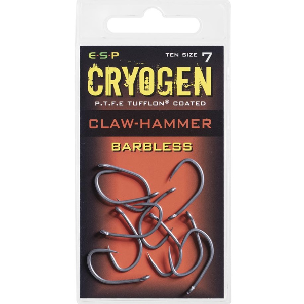 The ESP Claw Hammer Barbless hooks feature enlarged eye diameters, accommodating thicker monofilaments for use with the knotless knot. These hooks are the epitome of innovation and reliability in the angling world, making them an essential choice for any discerning angler looking to enhance their fishing experience.