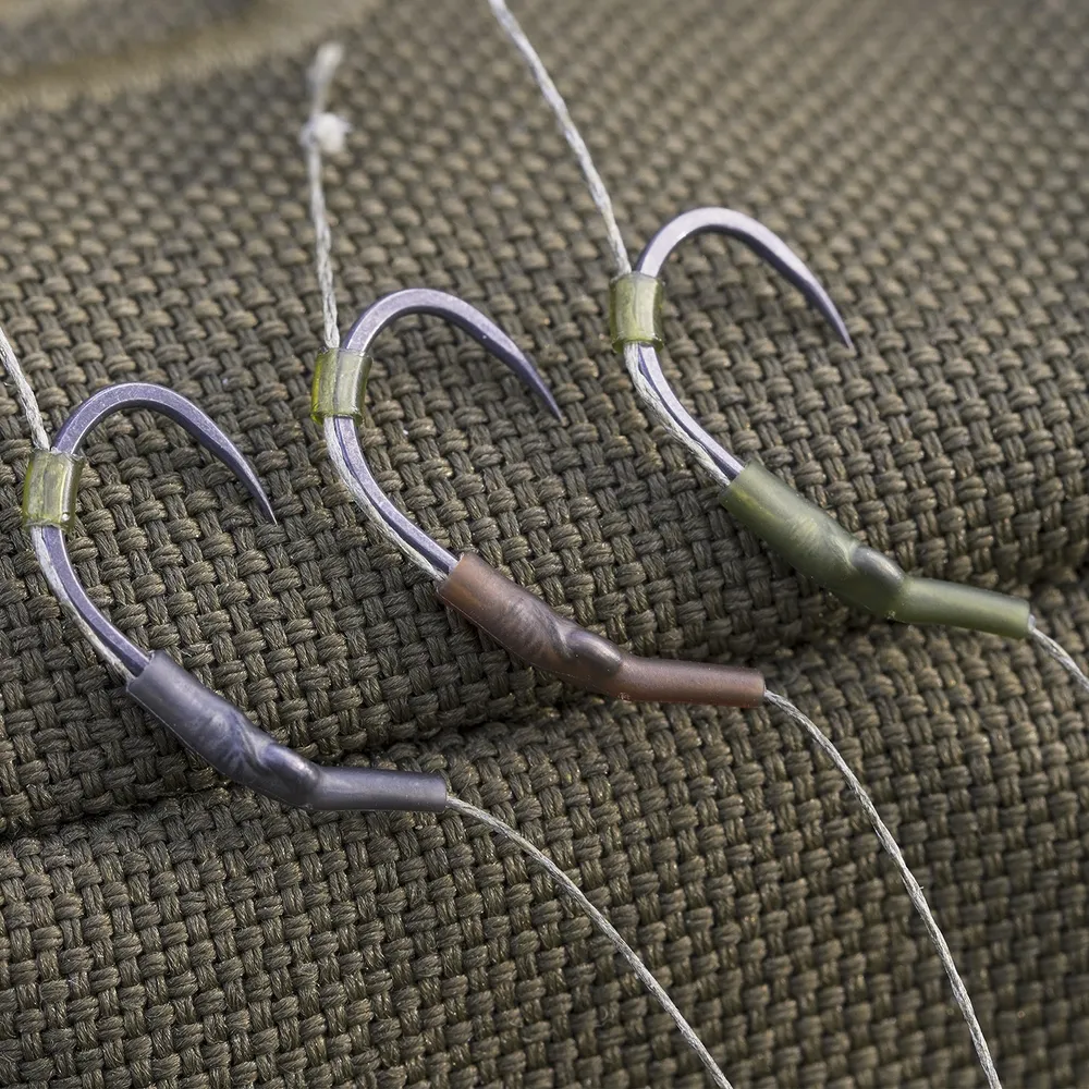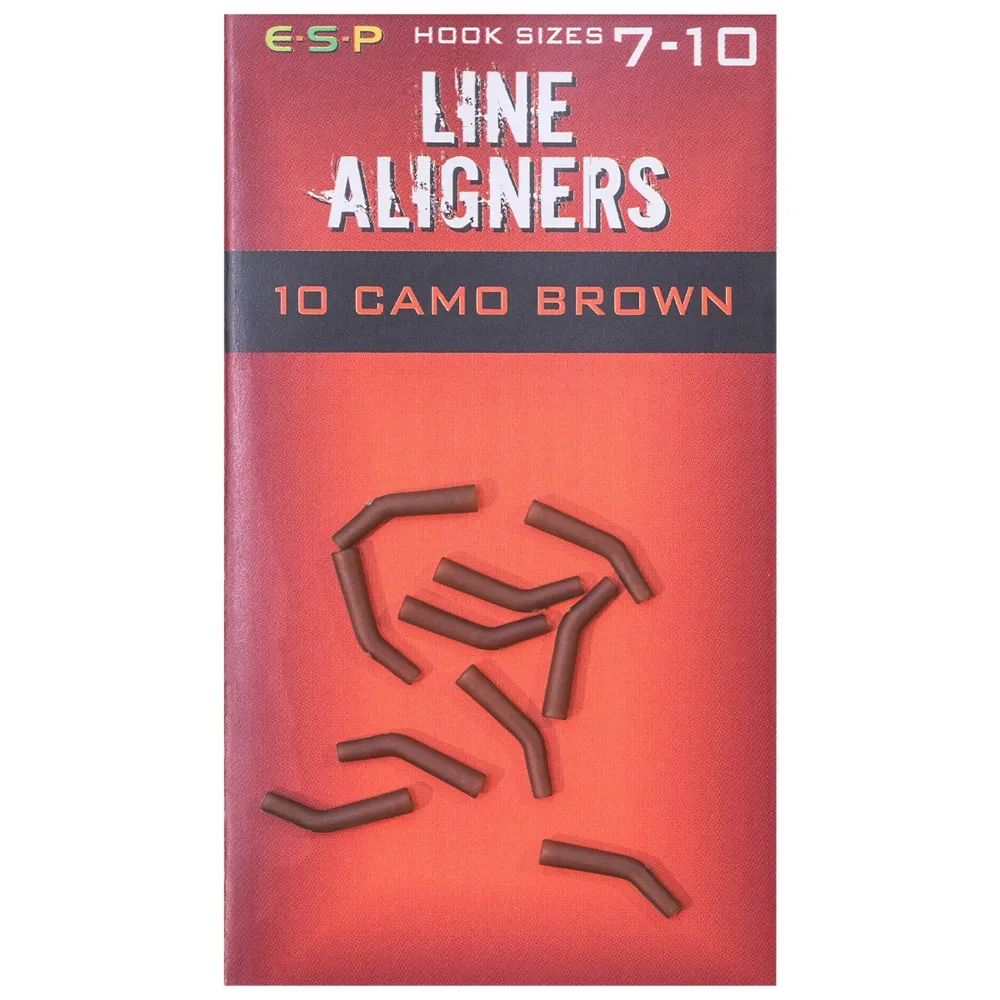 Two sizes and three colours: ESP Line Aligners are available in two sizes, for hooks from 2s to 6s and from 7s to 10s. They are also available in three colours, weedy green, camo brown, and choddy silt.