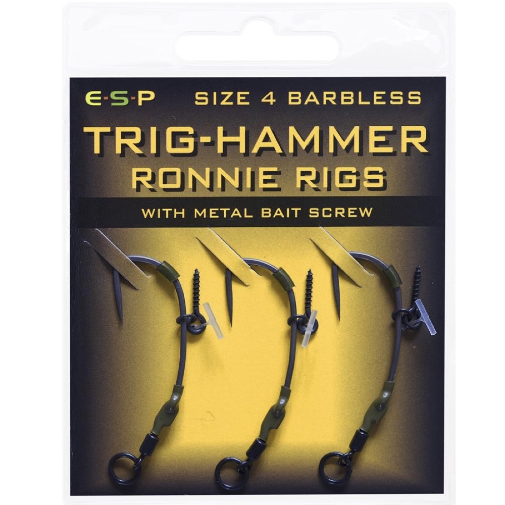 ‘- Ready made Ronnie Rigs gives perfect for pop-up presentation – Incredibly sharp long shank pattern hook – Subtle curved shank creates an aggressive angle and exceptional hook holds – Metal bait screw makes pop up attachment simple – Grip Stop on bend will not slip – Hook attached to Ronnie Ring Swivel sleeved with 1.6mm shrink tube – 3 rigs per pack
