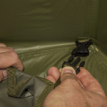 The Frontier is equipped with Camo Mozzy vents at the rear, allowing for effective ventilation and keeping insects at bay. Additionally, the bivvy features all-weather ventilation pegging points, enabling optimal airflow even during rainy weather. It offers multiple door options, including solid, clear, and camo mesh, giving you the flexibility to customize the shelter according to your preferences and the prevailing conditions.