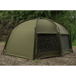 Made from 100% polyester, this 1-person size bivvy has dimensions of 250cm (length) x 185cm (width) x 130cm (height) and weighs 11.75kg. The packaged dimensions are 134cm x 25cm (diameter). Additionally, the bivvy comes with a Frontier Camo Mozzy Mesh Panel for added comfort and versatility.