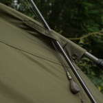 The Fox Frontier Bivvy comes complete with a heavy-duty groundsheet featuring a unique door entry flap, offering protection against damp ground and easy access to the shelter. The heavy-duty cam lok storm poles provide robust support and durability, with a double-zipped carry bag ensuring convenient transportation and storage.
