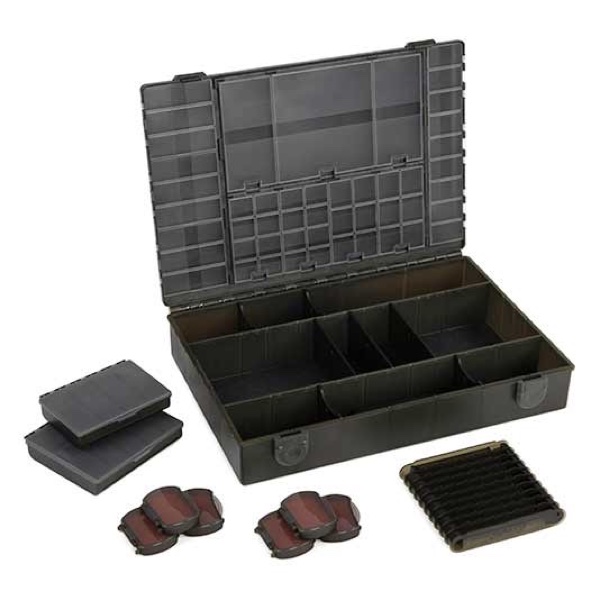 The Fox Loaded Large Tackle Box comes complete with a comprehensive set of components, including: