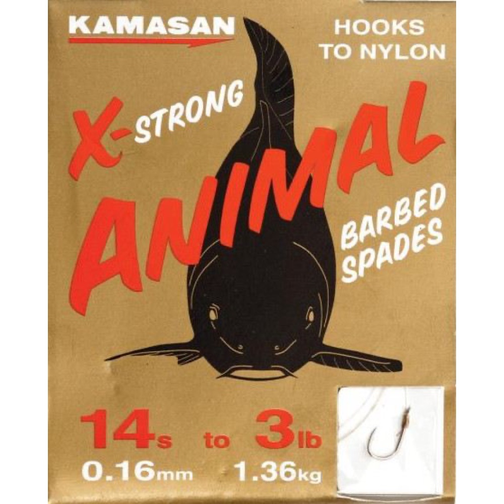 ‘- Kamasan Animal Hooks to Nylon Barbed – Super high carbon hooks – Barbed – Curved beak point for secure hook hold – Chemically sharpened needle point – Tied to a premium quality mono – Ideal for all specimen fish – 8 hooks per pack