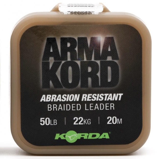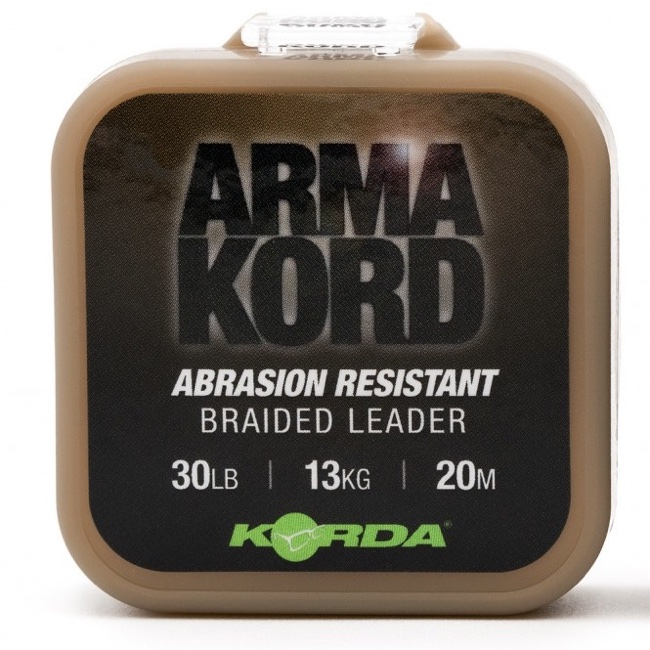 Korda Arma Kord, a meticulously designed braided leader tailored for demanding fishing situations, particularly in scenarios such as long-range casting or navigating snaggy areas. This leader excels under pressure, combining abrasion resistance with supple thinness to meet the challenges of the angling environment.