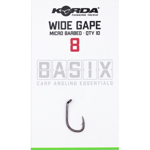 Korda Wide Gape Carp Fishing Hook – Part of the Korda Basic range, is an indisputable masterpiece in the realm of carp angling, delivering unparalleled excellence on every front. This intricately engineered hook is the result of meticulous design, crafted with a singular focus on achieving optimal performance, especially in the challenging environments of commercial fisheries. Its micro-barbed design is impeccably complemented by a sleek black nickel finish, enhancing not only its versatility but also providing a visually discreet profile underwater.