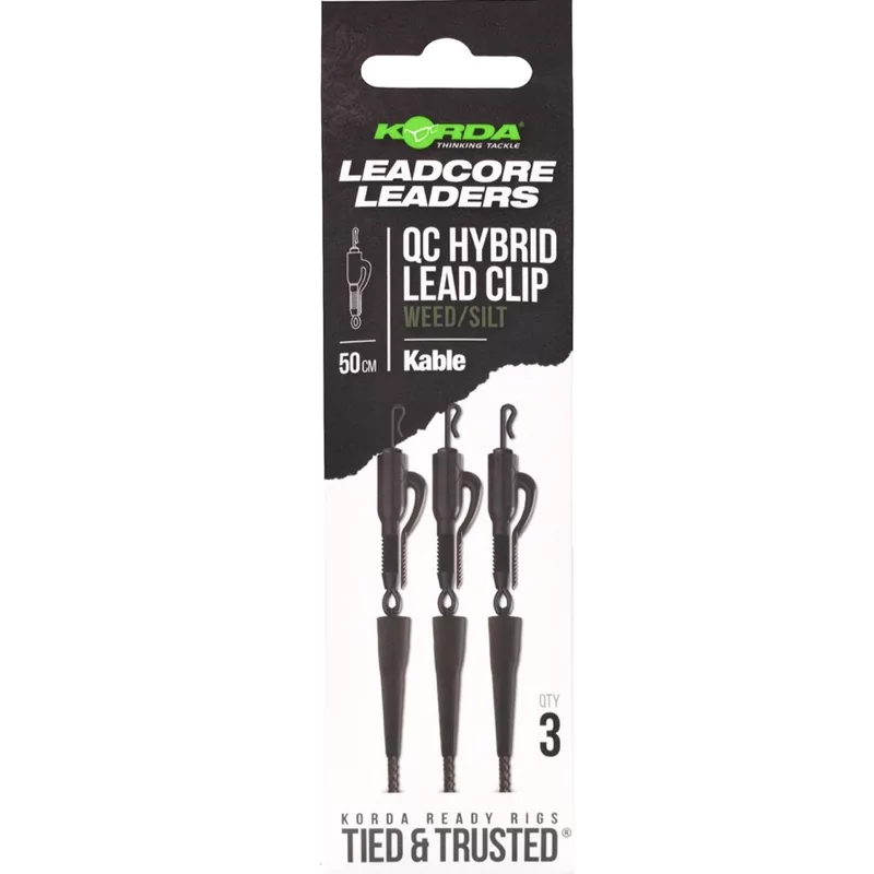 Each pack contains three QC Hybrid Lead Clip Korda leaders, available in a choice of Weed Green or Gravel Brown colours, ensuring you have the perfect option to blend seamlessly with your fishing environment. Experience the convenience and reliability of the Korda Hybrid Leadcore Leader, designed to streamline your angling experience and maximize your chances of success on the water.