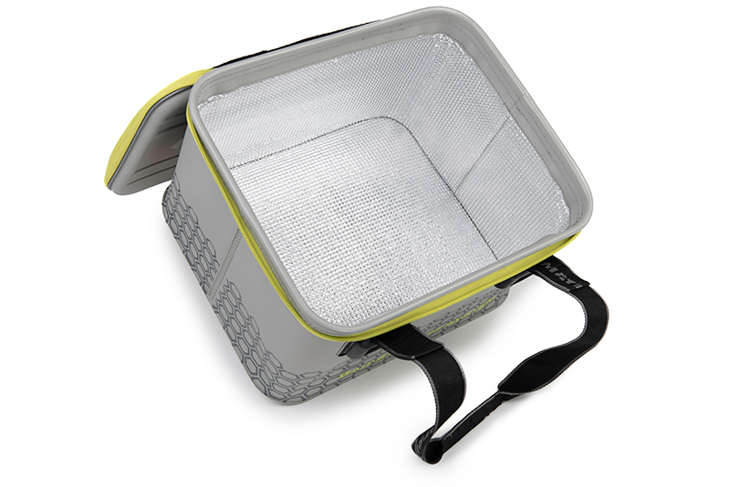 The outer layer of the system is made of light grey EVA, which not only adds durability but also features a foil lining. This foil lining plays a crucial role in maintaining the temperature inside the system, helping to keep your bait cool, fresh, and free from spoilage.