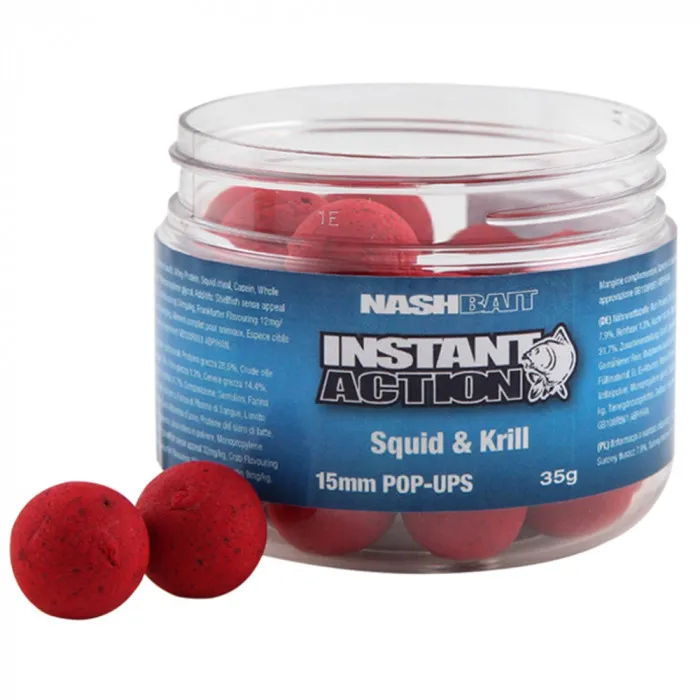 Introducing the game-changing Nash Squid Krill Pop-Ups, a revolutionary addition to the highly acclaimed Instant Action range that is set to redefine the way you fish. These pop-ups represent the perfect fusion of innovation, premium ingredients, and unrivalled attraction, delivering a truly exceptional baiting solution for carp anglers.