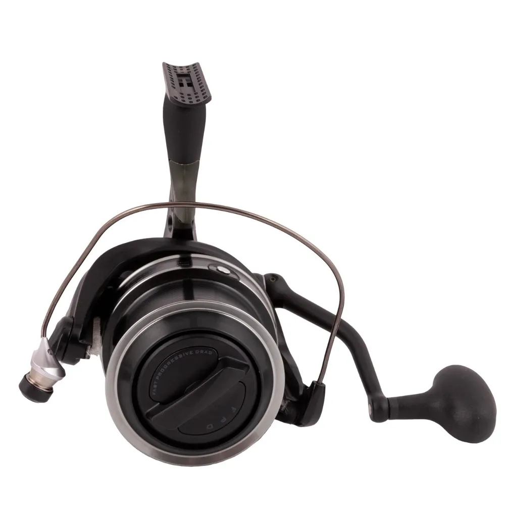 The Black Bomber Spod Reel offers enhanced line management with 2 round metal line-clips and a hard metal handle for durability. The TPE Ergo grip handle knob ensures comfortable handling even during extended fishing sessions. The reel features an XXL Even Flow roller, contributing to efficient line management.