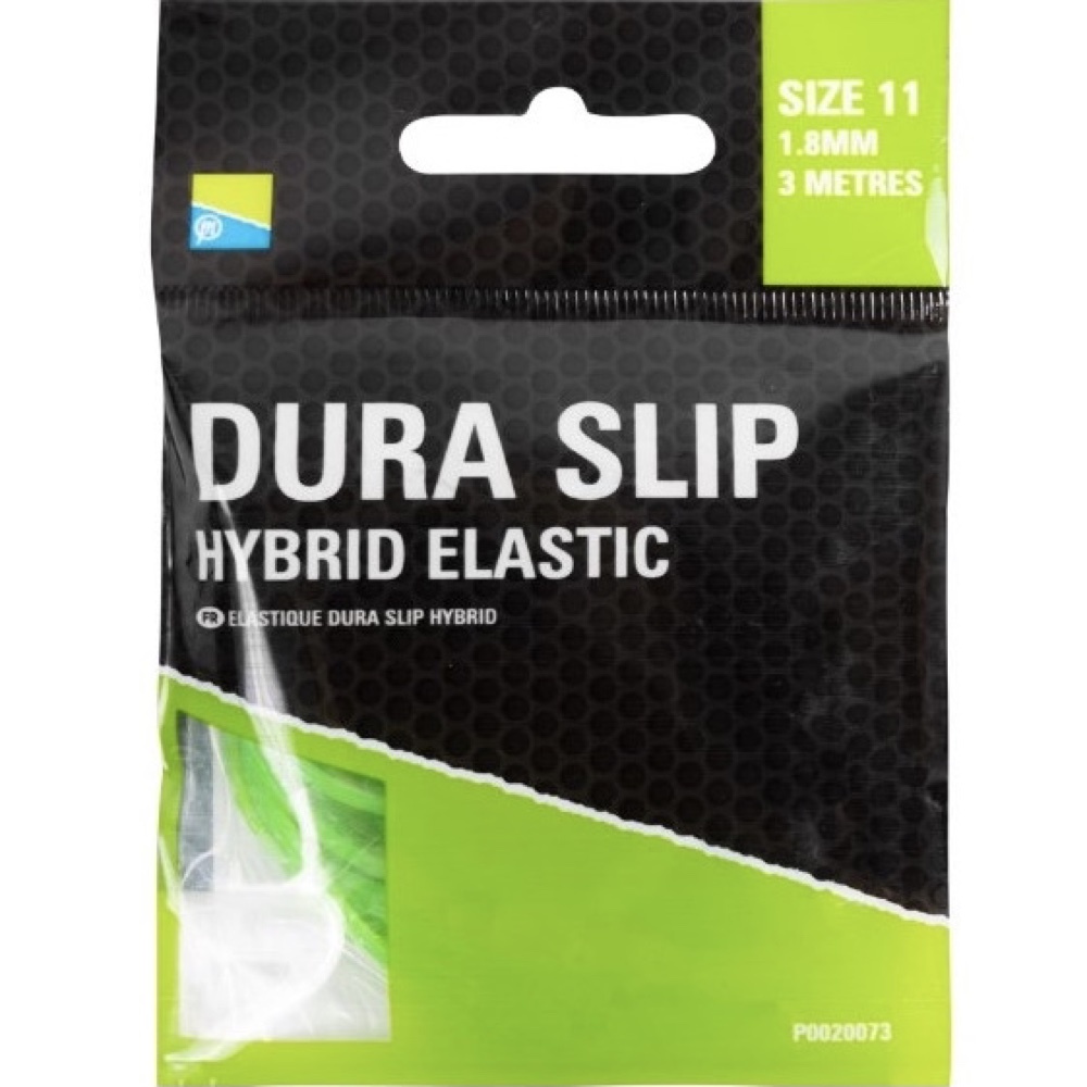 ‘- Preston Dura Slip Hybrid Elastic – Combines power, durability and stretch – Perfect solid elastic for all species – Pre coated with slip oil – Perfect for high catch rate venues – 3m length – High stretch factor