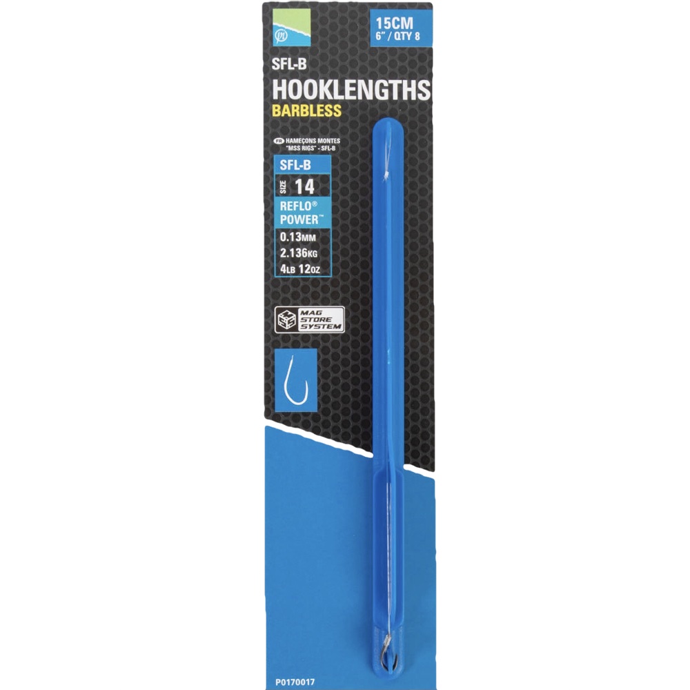 Each pack of these ready-tied rigs includes 8 hand-tied rigs, all neatly stored on the rig stick. The hook size, line diameter, and breaking strain are easily identifiable thanks to the attached sticker, making your angling experience hassle-free and efficient. With Preston SFL-B Hooklengths, you’re equipped with rigs that combine precision, quality, and ease of use, setting you up for success on the water.